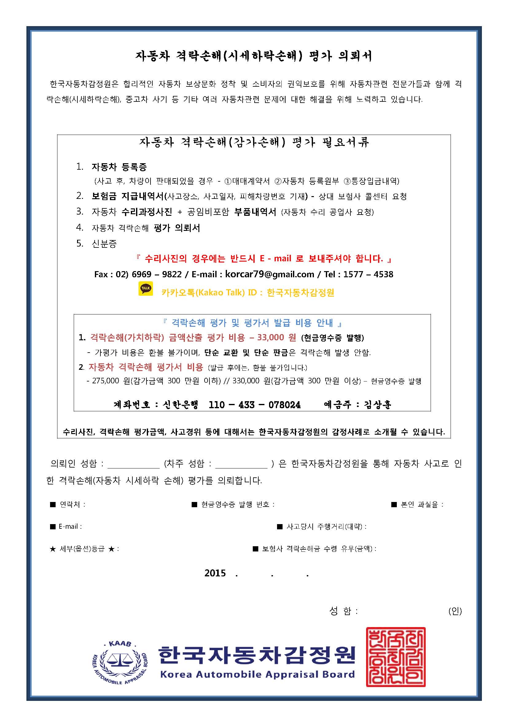 - 격락손해 평가 의뢰서 작성해 제출